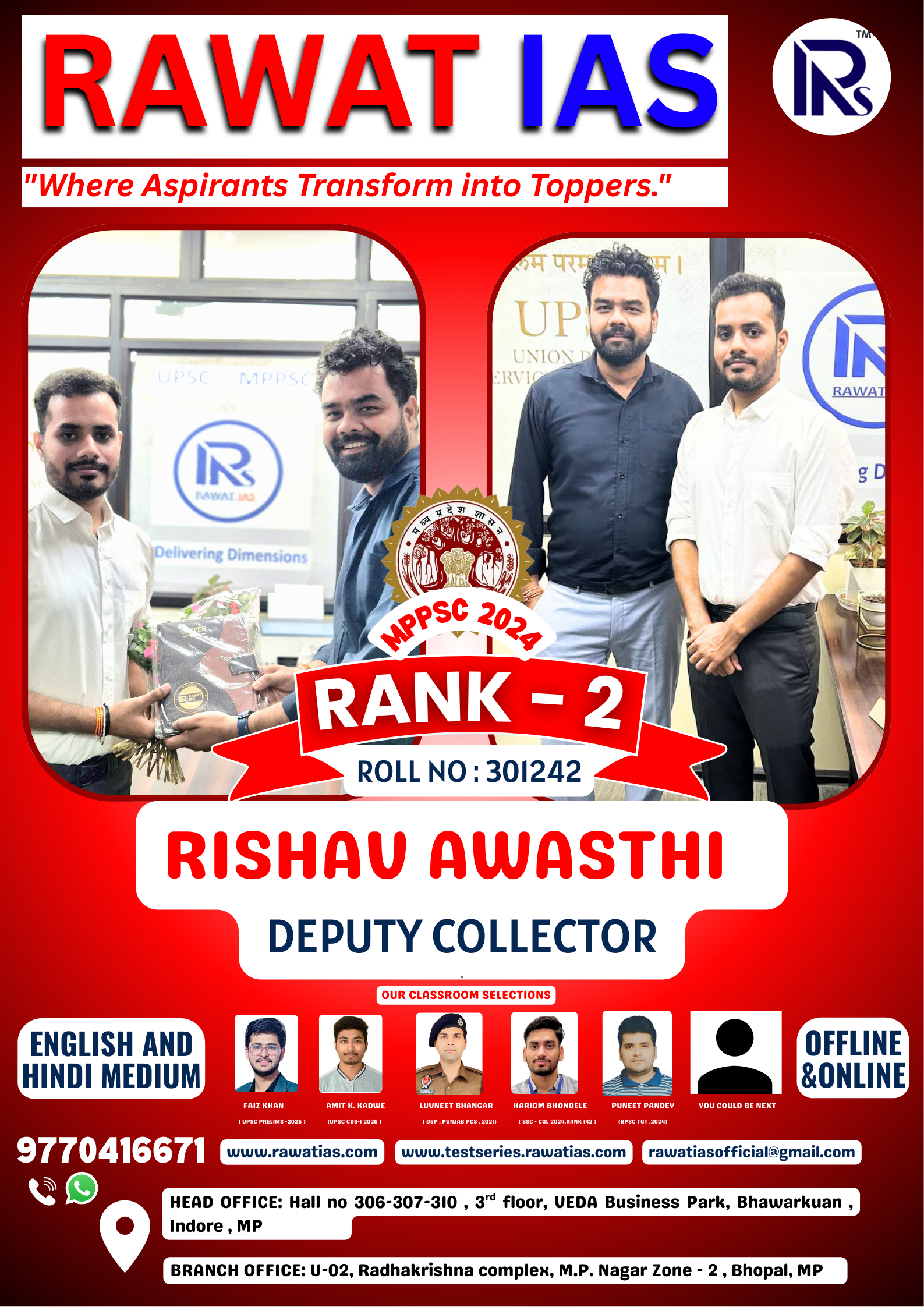 Rawat IAS is a premier institute dedicated to guiding aspirants toward success in competitive exams like UPSC, MPPSC, EPFO, FSO, CDS, VYAPAM, and Assistant Professor exams. Founded with a vision to provide quality education and result-oriented training, Rawat IAS started its online journey in April 2020 and expanded to offline classes in July 2023. Our programs are designed to build strong conceptual clarity, analytical skills, and exam-oriented strategies. With expert faculty, updated study material, regular test series, and personalized mentorship, we aim to help students excel in every stage of preparation – Prelims, Mains, and Interviews. Whether you prefer classroom learning or flexible online classes, Rawat IAS provides comprehensive courses to meet your needs and turn your aspirations into achievements.